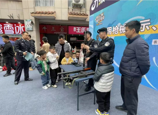 警用装备体验区前排起长队,大家近距离触摸、感受各类警用装备,圆了一场真切的 “警营梦”。