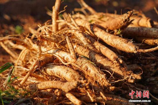 图为10月14日,航拍农户在威宁自治县草海镇同心村党参种植基地采挖党参。赵庆能摄10月14日,在威宁自治县草海镇同心村党参种植基地,基地负责人王洪银(左一)和农户赵乖巧查看采挖的党参品质。赵庆能摄10月14日,在威宁自治县草海镇同心村党参种...[详情]