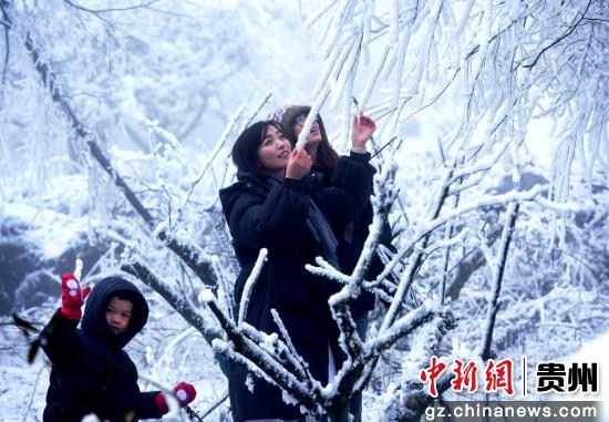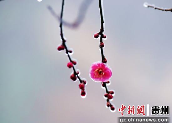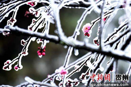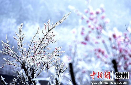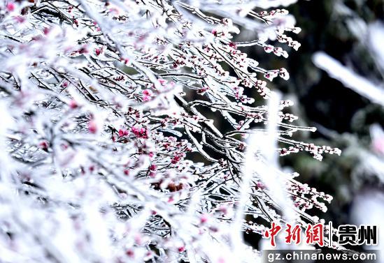 贵州六盘水:梅花傲雪绽放 引游客踏雪赏梅