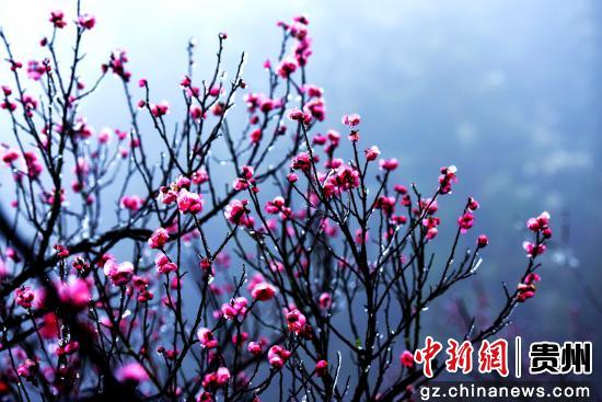 2月10日,贵州省六盘水梅花山景区迎来了数千株梅花的盛开,枝头点点飞红,吸引了众多游客前来赏花,享受春日的时光。(黄庆松 李武)