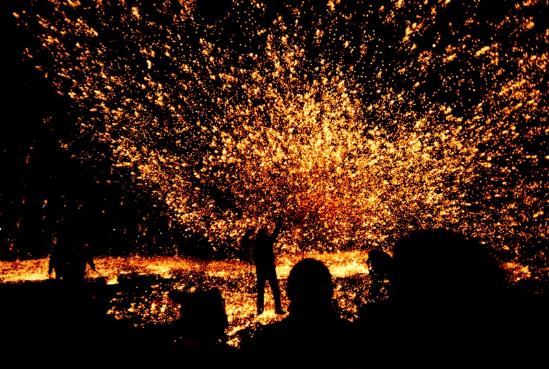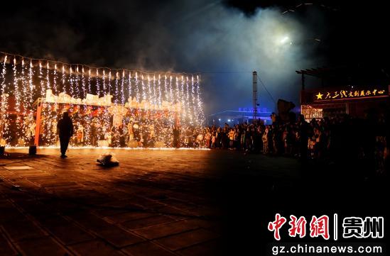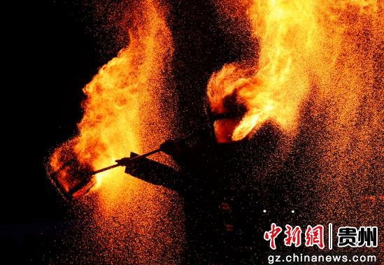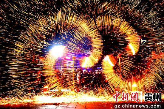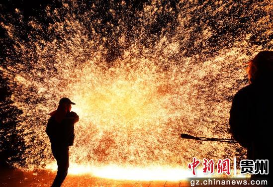 2月12日,六盘水市水城古镇举行非遗表演,打铁花、火壶、烟花瀑布等表演刺激又浪漫,让市民在家门口感受浓浓“年味”,尽享丰富多彩的文化盛宴。(黄庆松)