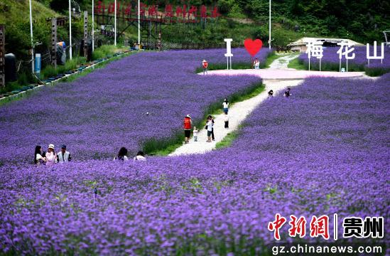 中新网贵州新闻8月3日电 (黄庆松)盛夏时节,贵州六盘水市梅花山景区滑雪场近20亩的马鞭草进入首季盛花期,大片大片淡紫色的花穗如繁星点点,如梦如幻,犹如一片浪漫的紫色花海,游客纷至沓来赏花观景,尽享夏日清凉。