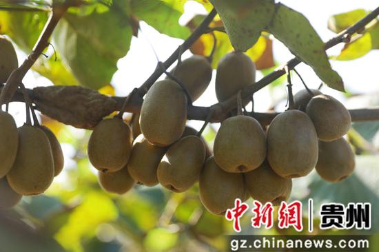 中新网贵州新闻9月4日电(谢达意 龙晴 刘花兰)秋高气爽,瓜果飘香。眼下正是猕猴桃成熟的季节,在贵州省剑河县岑松镇平加村猕猴桃种植基地里,猕猴桃藤架郁郁葱葱,一个个沉甸甸的红心猕猴桃挂满枝头,一派丰收景象。