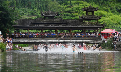 中新网贵州新闻7月8日电(张峰) 贵州省三穗县良上镇“六月六”民族文化旅游节期间,民族巡游、文艺晚会、芦笙舞、山歌赛、苗歌赛、钓鱼赛、抓鸭子赛、篮球赛等精彩活动轮番上演,展现了民族艺术的独特魅力和乡村的蓬勃活力,吸引了众多外地游客慕名而来。