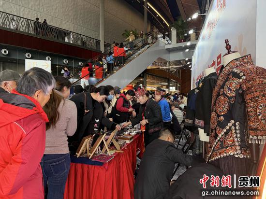 与此同时,惠民文化消费市集内人头攒动。苗族银饰、苗绣、蜡染等非遗手工艺品琳琅满目,巧夺天工的工艺让观众赞叹不已;“村BA”系列文创产品创意十足,将赛事活力与民族元素巧妙融合。特别值得一提的是,台江县以国家大剧院艺生活logo为核心,融合龙、蝴蝶、花鸟等苗族传统纹样,采用苗绣“绘”制了《苗韵艺华章》,以此祝福国家大剧院建院十八周年。