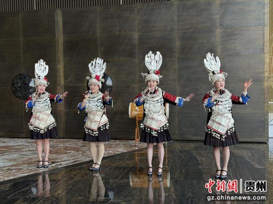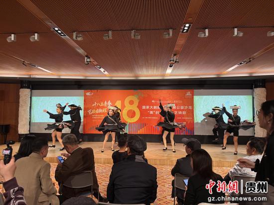 舞台之上,台江县苗疆艺术团的演员们身着银饰盛装,带来了一场场极具民族风情的表演。欢快悠扬的苗族飞歌宛若天籁之音,响彻剧院;铿锵有力的反排木鼓舞节奏明快,热情四射。传统艺术与现代审美在此碰撞交融,引得现场观众纷纷驻足欣赏,掌声此起彼伏。