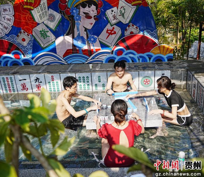 图为游客在仰阿莎温泉小镇一边泡温泉一边打麻将。