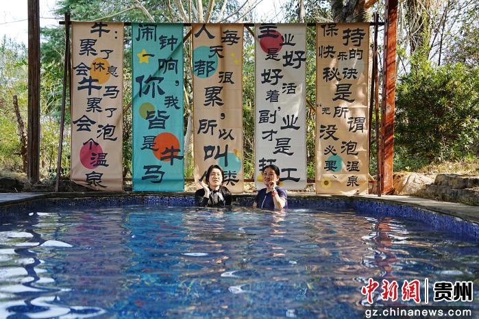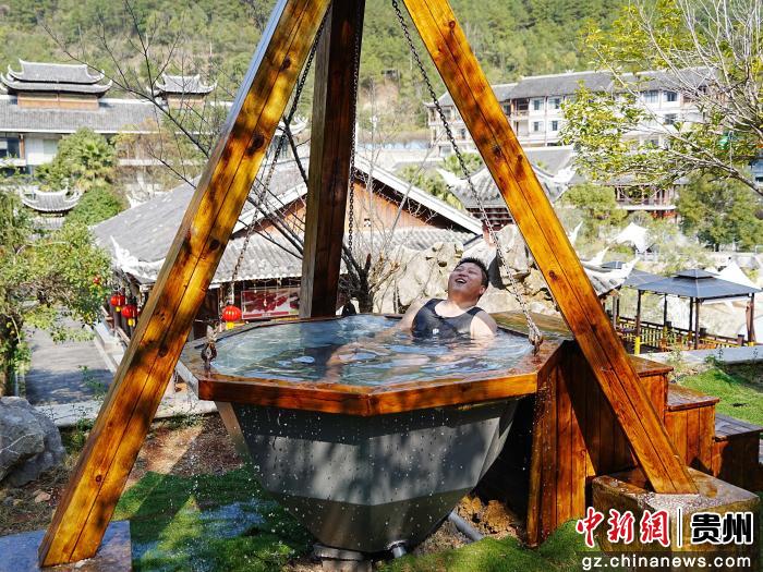 图为游客在剑河仰阿莎温泉小镇泡温泉。