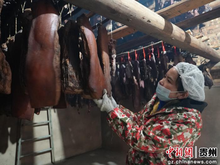 中新网贵州新闻1月29日电(车逢路 黄静雯)腊味渐浓时,年关亦将近。走进贵州省镇远县名城食品厂,熏烤房里腊香四溢,一排排色泽金黄、油脂温润的腊肉挂满烤架。制作间里,工人们正有条不紊地进行切割、腌制、晾晒……处处洋溢着浓浓的年味与忙碌的喜悦。