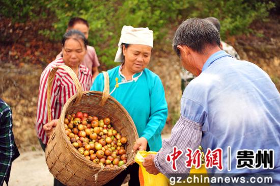 村民在贵州省黔南布依族苗族自治州罗甸县凤亭乡联明村搬运油茶。 史传鸿 摄