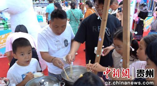 在产品展销与体验区,各类特色产品琳琅满目。构树猪肉展台前,企业工作人员现场烹煮产品供市民试吃,同时展示饲料检测报告、养殖环境监测数据等权威材料,详解从构树种植到猪肉加工的全链条标准化流程,平浪大米的晶莹米粒散发清香,现榨菜籽油现场飘香,都匀红酸提供开胃试吃,苗药洗发水展台前,工作人员出示权威检测报告并分发试用装,“外婆家酱油”手工酿造工艺、刺梨制品的营养解析等讲解,让市民直观感受产品价值。