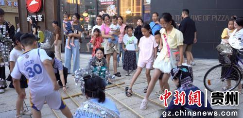 活动创新采用“直播引流+线下转化”模式,线上“贵品黔程”直播间同步开启产品讲解,观众凭关注“贵品黔程”直播间集赞兑换西瓜、柠檬水等福利;线下互动环节更是人气爆棚。竹竿舞体验与挑战让参与者感受苗族文化的活力,套圈、“你比划我来猜”等游戏妙趣横生,参与者纷纷获得小礼品。熊猫玩偶互动搞笑有趣,吸引了众多小朋友和家长参与,现场欢声笑语不断。线上线下福利活动同步开展,进一步提升了活动的参与度和影响力。