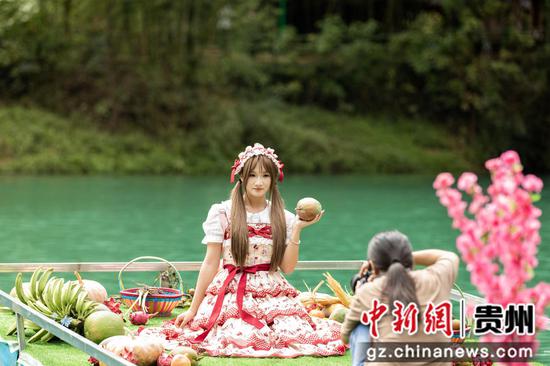 2025年10月1日,游客在贵州省黔南布依族苗族自治州罗甸县沫阳镇大小井风景名胜区体验民俗风情。