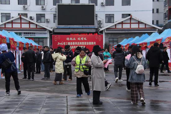 为推进黔南州稳就业促增收2026年专项行动落地,破解群众就业难题,2月8日,三都县春风送岗暨就业援助月县内专场招聘会在城南社区举办,为群众送上就业“春风”,助力群众就近稳定就业、实现增收。