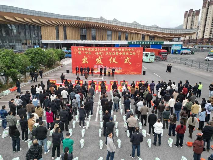 春潮涌动启新程,返岗复工正当时。2月25日,黔南州荔波县2026年“开往春天的专列”暨“专车、自驾”点对点集中输出活动出发仪式在县汽车客运站举行。4辆“点对点”返岗专车、85辆自驾车整装待发,五百余名荔波务工人员带着家乡的关怀与期盼,奔赴广东、浙江等地开启新一年的奋斗之旅,为新一年的增收致富、乡村振兴按下“加速键”。