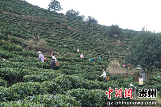 中新网贵州2月28日电(安金山) 近日,贵州省三都县大河镇合江社区千亩茶园绿意盎然、生机勃发,鲜嫩茶芽竞相萌发,茶农们抢抓时节采摘新茶,拉开2026年春茶采摘序幕。