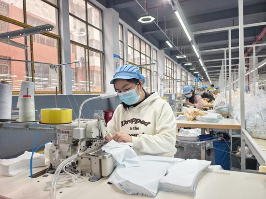 “我家住在八楼,开厂在二楼,这里上班很方便的,我又得照顾孙,下来就到厂上班了。”三都县三合街道麻光社区居民杨昌丽说。