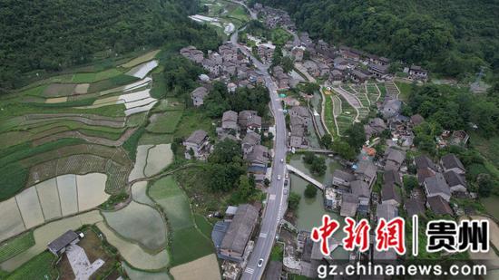 贵州册亨县冗渡镇陂鼐古寨航拍图。