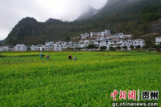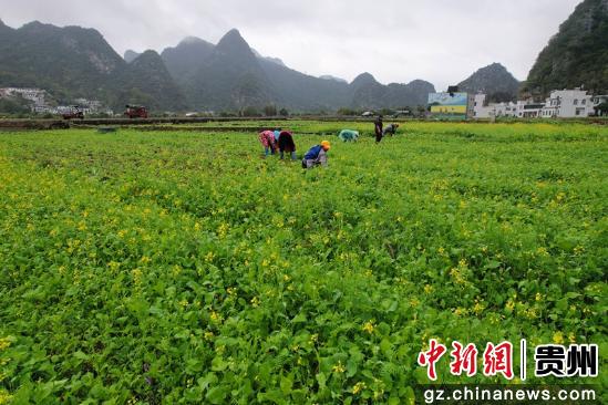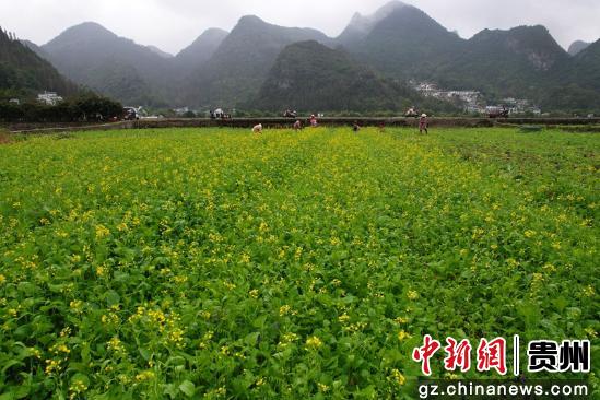 日前,贵州省黔西南布依族苗族自治州兴义市万峰林景区油菜花开,为冬日增添一抹景色。(江禾)