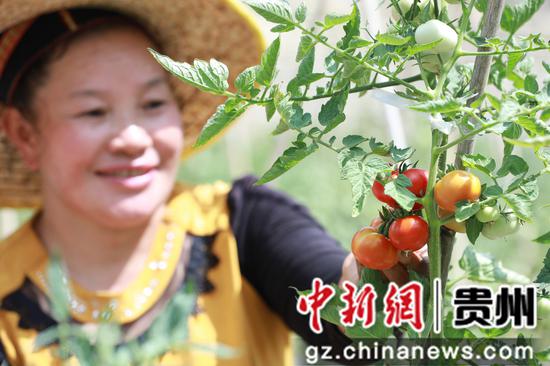 中新网贵州新闻8月23日电(吴玲 潘文)近日,在贵州省黔东南苗族侗族自治州剑河县幸福社区的乡愁菜园里,8万多株西红柿渐染胭脂色,迎来了入秋后的头茬采收。