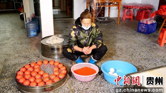 中新网贵州新闻1月13日电 (张金芳 文政松)年关将至,贵州玉屏侗族自治县进入制作传统侗族美食的旺季,打糍粑、腌腊肉、灌香肠、做红粑……人们忙得不亦乐乎,处处洋溢着“年味”。红粑因其寓意喜庆的红色外表,尤其受到侗族同胞的喜爱。