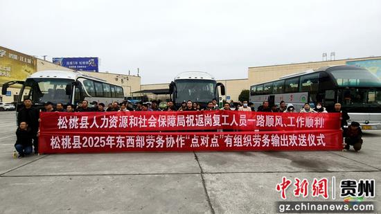 中新网贵州新闻2月6日电(杨智勇)2月5日,松桃70余名外出务工人员在县人社局工作人员的组织下,有序登上免费大巴前往铜仁乘坐到广东的火车,踏上新一年的奋斗征程。