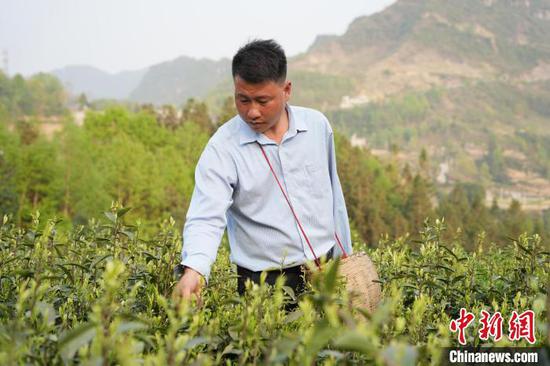 图为“90后”青年杨胜强在采茶。周燕玲 摄