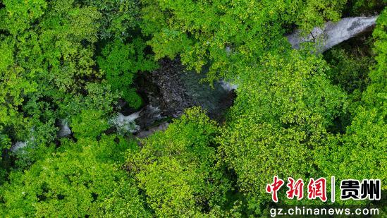 图为在贵州梵净山国家级自然保护区拍摄的观音瀑布景观。