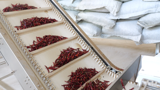 机器逐粒筛选,先剔除花皮、霉变等次品,再分拣辣椒秆与杂质,一步步推动干椒品质实现从“合格”到“优质”的跨越。