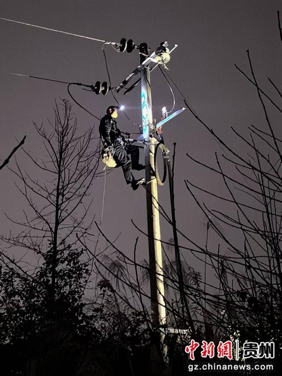 中新网贵州新闻2月5日电(胡伟 田杰) 4日,在松桃苗族自治县汽贸城,松桃供电局太平供电所组织团青服务队挑灯夜战,对10千伏太红线开展消缺除患工作,以精准电力保障助力企业冲刺首季“开门红”。