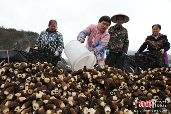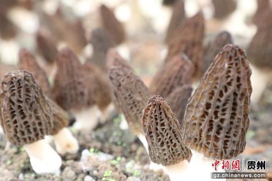 中新网贵州新闻3月4日电(程泉茹 陆小双 王殷富 陈泓廷)眼下正是羊肚菌采收的黄金时节,走进墨冲镇丙午村的羊肚菌种植基地,只见连片的大棚内一朵朵灰褐色的羊肚菌撑着圆润饱满的“小伞”破土而出,密密麻麻地分布在菌垄上,长势十分喜人。村民们正提着篮子、拿着小刀,穿梭在大棚间进行采摘,一派繁忙的丰收景象。