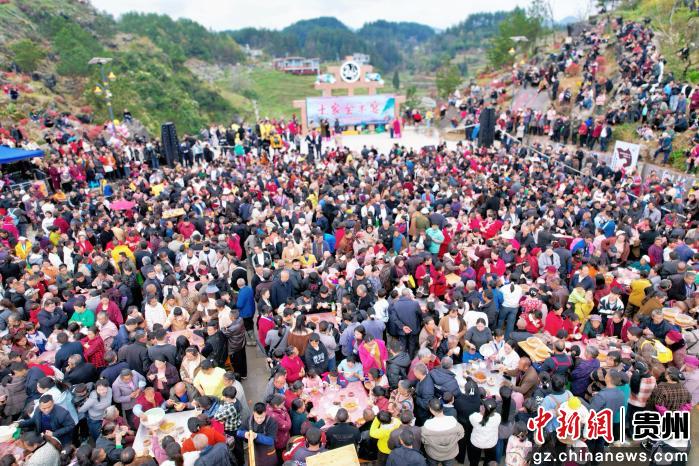 游客在沿河·黑水“桃李欢喜园”吃“全羊宴”。田洪兵 摄