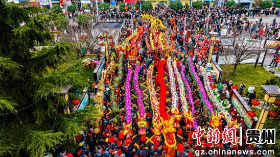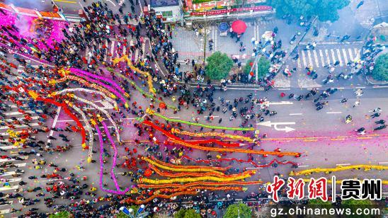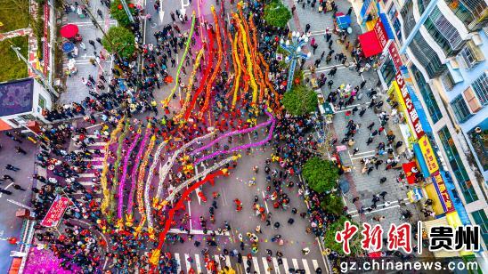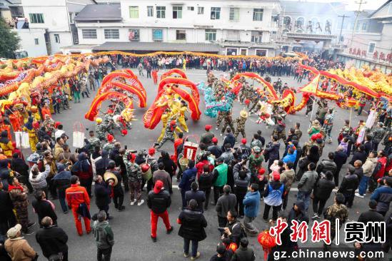 图为遵义市播州区枫香镇舞龙队伍舞龙喜庆新春。李仁军 摄