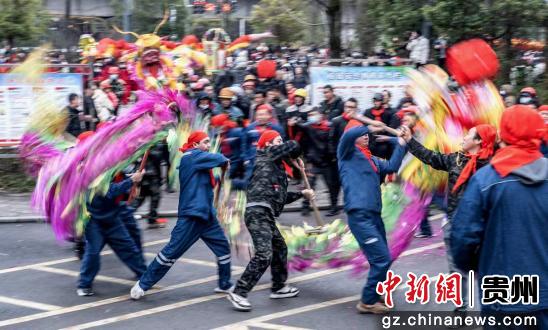 图为遵义市播州区芶江镇开展舞龙民俗活动。曹廷飞 摄