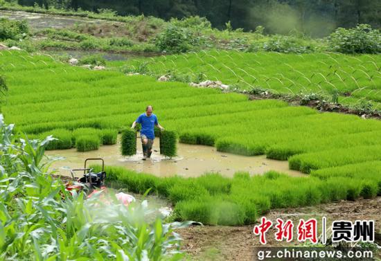 中新网贵州新闻5月29日电(韩克超)“春播一粒种,秋收万担粮”。端午将至,贵州省遵义市道真自治仡佬族苗族自治县处处涌动着忙碌的身影,广大群众抢抓农时整地插秧,有序开展水稻移栽,在田间地头绘就一幅农忙新图景。