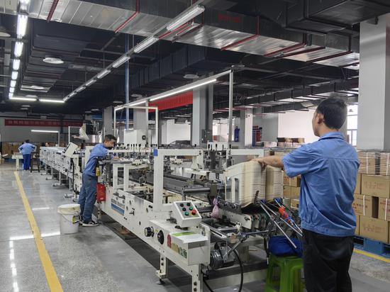 能够快速完成包材订单,离不开该企业近年来积极研发专利技术、不断引进先进设备等措施。截至目前,该公司已累计拥有37项专利,引进配备了海德堡12+4色印刷机、AVT检品机等顶尖设备,年产量1.7亿个酒盒。“为应对双节旺季,公司5条生产线,近40台设备全部运行,自动化覆盖率达95%,智能车间每个班次产能能达到18000个礼盒,目前我们接到订单有5批,数量40万个。”贵州省仁怀市申仁包装印务有限责任公司后加工车间主管段昭军说。