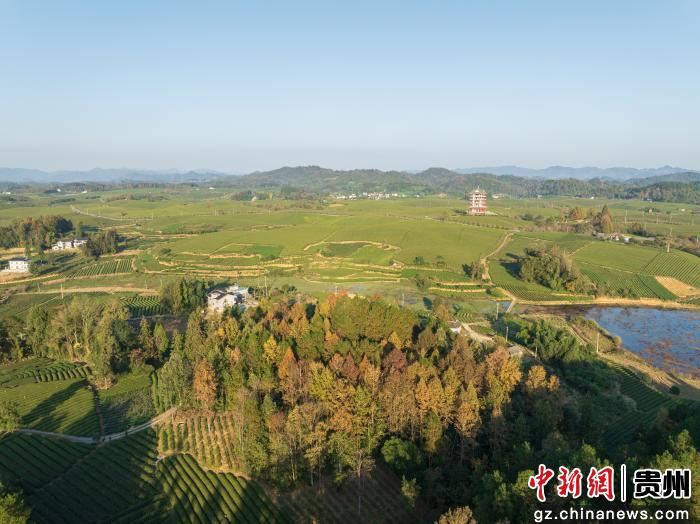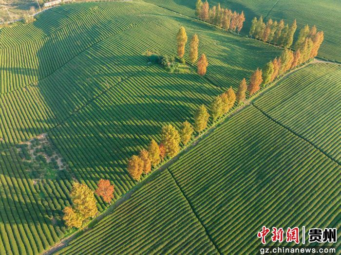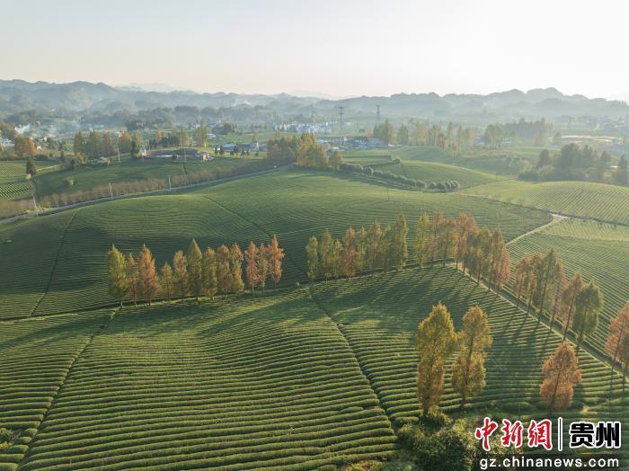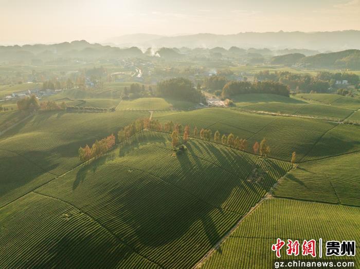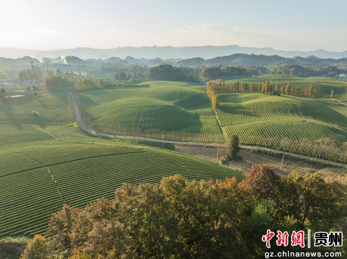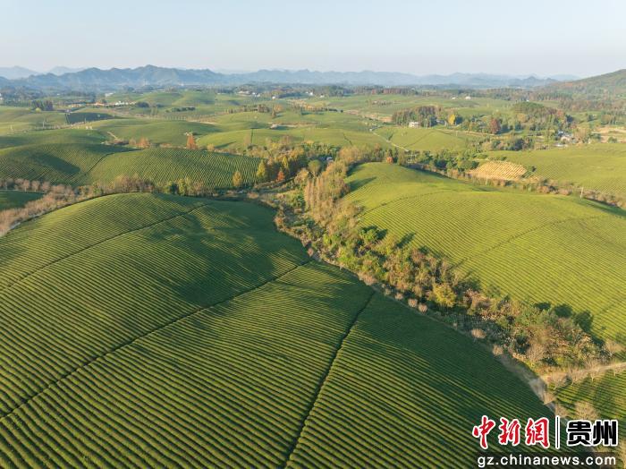 11月21日,航拍贵州省遵义市湄潭县“万亩茶海”景区。冬日阳光洒落在连片茶园上,茶树层层铺展,展现独特的冬季景观。