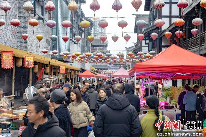 中新网贵州新闻2月14日电(瞿宏伦 熊世羽)连日来,位于贵州省遵义市汇川区的遵义古城每逢农历初二、初五、初八、初十的赶集日人声鼎沸、烟火升腾。此起彼伏的吆喝声、邻里间的寒暄声与美食的香气交织在一起,勾勒出一幅鲜活的遵义新春市井画卷。