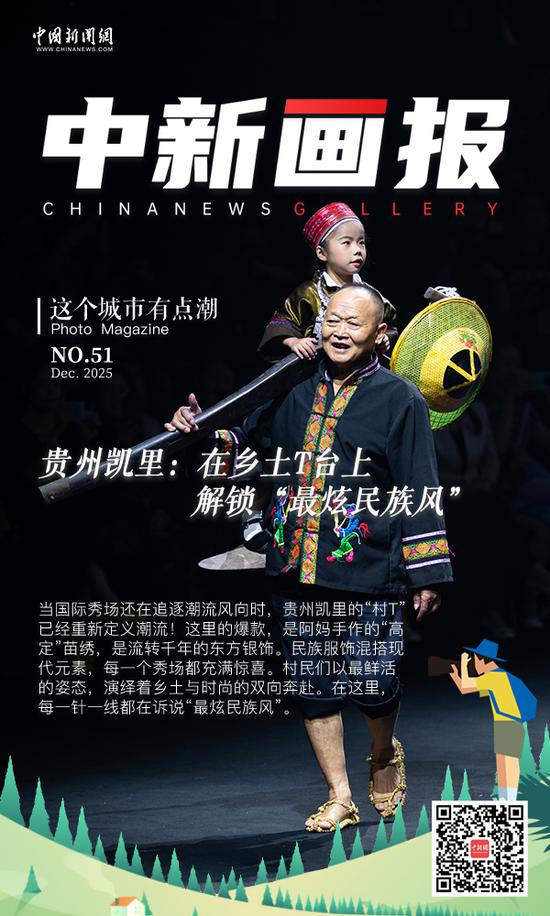 当国际秀场还在追逐潮流风向时,贵州凯里的“村T”已经重新定义潮流!这里的爆款,是阿妈手作的“高定”苗绣,是流转千年的东方银饰。民族服饰混搭现代元素,每一个秀场都充满惊喜。村民们以最鲜活的姿态,演绎着乡土与时尚的双向奔赴。在这里,每一针一线都在诉说“最炫的民族风”。图为2025年9月12日,贵州“村T”在中国国际时装周上走秀。