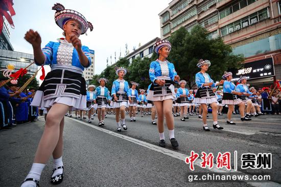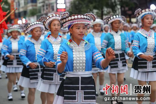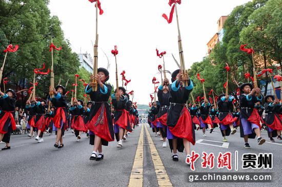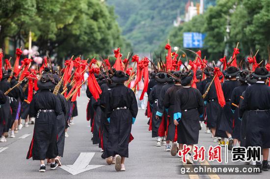 6月22日晚,贵州省黔南布依族苗族自治州贵定县结合端午传统习俗,开展民俗传统踩街活动。踩街活动主要由楚风文化展示、长衫龙展示、长鼓舞展示等7个方阵组成,市民随着方阵在热闹与活力中游走百病、祈福安康。踩街活动结束后,当地还举行了以“村party”为主题的2023年“印象·端午”篝火晚会。