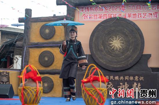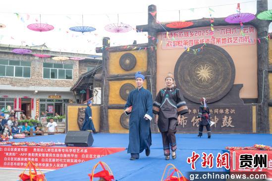 6月30日,农历六月初六,贵州省贵阳市白云区牛场乡举办2025年“六月六”云雾欢歌暨第四届非遗蓬莱地戏艺术节,布依族群众载歌载舞欢度传统民族节日“六月六”。
