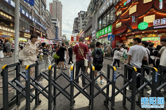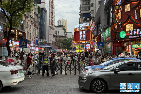 对远道而来的游客而言,临时交通管制带来的安全感尤为珍贵。来自四川的游客杨女士带着老人和孩子专程打卡民生路美食,她深有感触:“这条街人气太旺,要是车和人混在一起,老人小孩反应慢,很容易出意外。现在管制后,我们推着婴儿车、扶着老人逛起来毫无顾虑,能专心品尝丝娃娃、肠旺面这些特色小吃,体验感特别好,必须为贵阳交警点赞!”