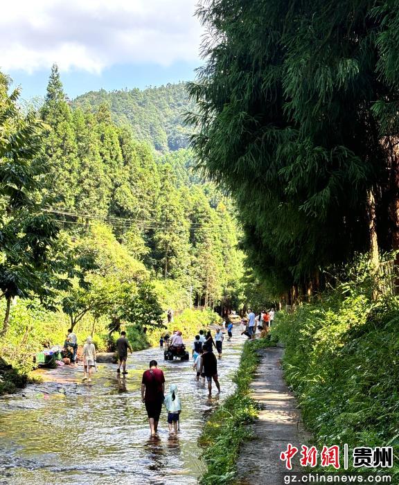 中新网贵州新闻8月12日电(刁苓沙 江勇)秋日里,走进贵州省遵义市习水县大坡镇飞鸽森林公园的“水上公路”,只见清澈溪流漫过自然冲刷而成的天然石板路,游客们光着脚丫尽情踩水、嬉戏打闹,水花四溅,笑声不断。