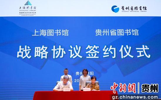 图为上海图书馆与贵州省图书馆签订战略合作协议。应腾 摄
