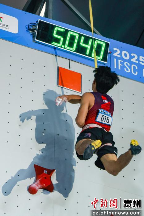 9月12日,2025年国际攀联世界杯攀岩赛(中国贵阳)在贵州省贵阳市观山湖区贵州·彩湖国际攀岩中心开幕,来自14个国家和地区的68名参赛运动员角逐2025国际攀联速度攀岩总积分冠军。