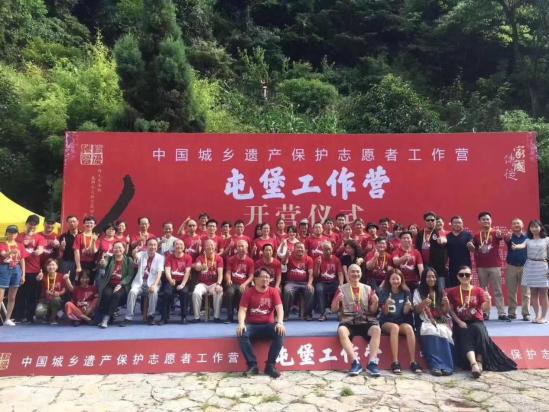 图为建筑师越剑(第一排左一)参加“屯堡工作营”开营仪式。