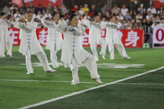 榕江县“村超”球场作为贵州“村超”全域开赛预热的核心舞台,在10月1日的“全民健身与贵州‘村超’同行”预热活动中,榕江县太极协会的长者们身着飘逸太极服,以舒缓流畅的招式展现中老年人的健康风貌,刚柔并济的表演与赛场的热烈氛围形成独特呼应;古州二小的学生们则带来足球操表演,将踩球、传接等足球动作融入舞蹈,灵动身姿与灿烂笑容间,传递出青少年对足球运动的喜爱。这场“一老一小”的展演,既是对全民健身理念的生动诠释,更以群众喜闻乐见的方式,为10月18日贵州“村超”的全域开赛聚拢人气、点燃期待。
