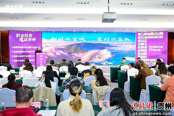 中新网贵州新闻10月23日电 (石小杰)10月23日,历时三个月的“黔途有你播动贵州”2025贵州省旅行社线路产品直播大赛迎来颁奖典礼。来自各市州的获奖选手、获奖旅行社、旅游行业精英、高校嘉宾及媒体代表等140余人齐聚贵阳市云岩区,共同见证大赛“四个十佳”奖项及冬季主题旅游示范线路产品的发布。