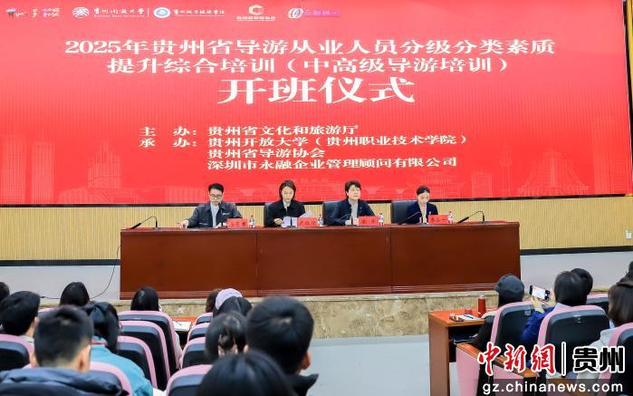 中新网贵州新闻11月6日电(石小杰)11月6日,由贵州省文化和旅游厅主办,贵州开放大学(贵州职业技术学院)、贵州省导游协会共同承办的“2025年贵州省导游从业人员分级分类素质提升综合培训(中高级导游一期)”在贵州开放大学正式开班。