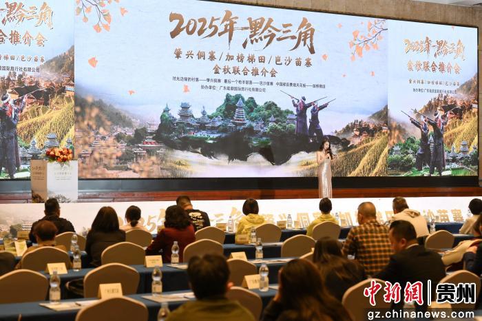 中新网贵州新闻11月7日电 肇兴、岜沙、加榜景区2025年金秋联合推介会5日在广州成功举行。通过民族歌舞展演、旅游资源推介及行业深度交流,贵旅集团向广州旅游业界及媒体全方位展示了独具魅力的文旅资源和全产业链的服务优势,邀请大湾区游客体验多彩贵州冬季新玩法。